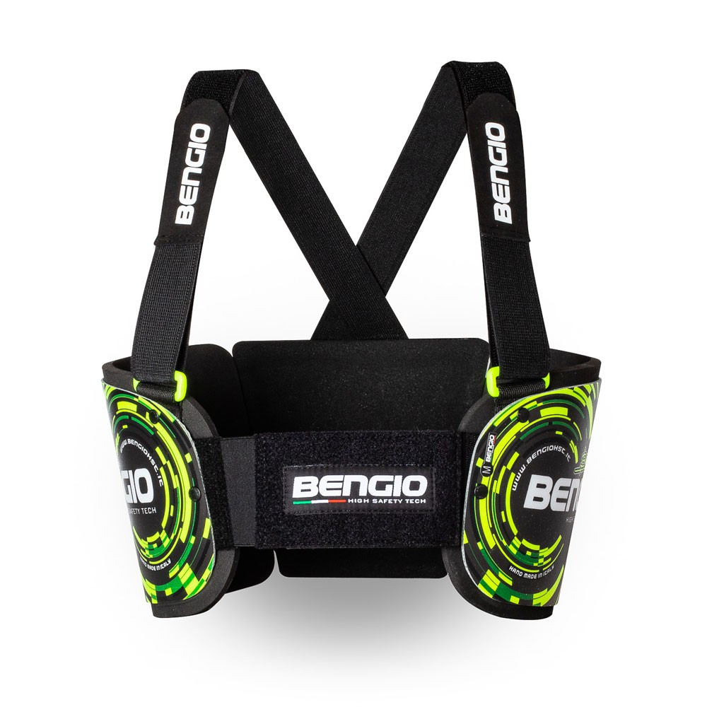 Handcrafted rib protector made with high quality materials, essential ergonomic design fully adjustable with the new velcro closure that allows the drivers a better breathing during the track session thanks to the double elastic band.